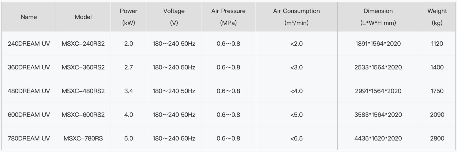 360DREAM UV LUXURY, 480DREAM UV LUXURY, 600DREAM UV LUXURY, 780DREAM UV LUXURY, 240DREAM UV LUXURY